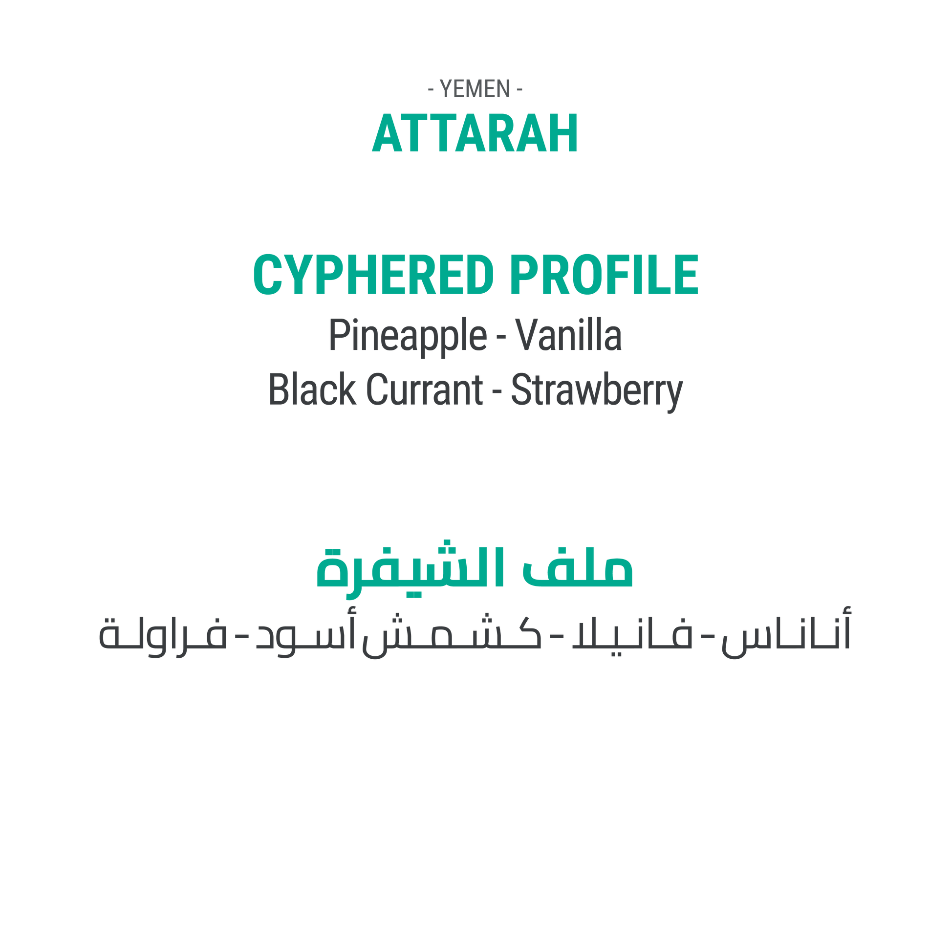 قهوة يمنية استثنائية تنفجر بنكهات الفواكه الاستوائية والتوت النابضة بالحياة. تتكشف طبقات الأناناس والفانيليا والكشمش الأسود والفراولة مع كل رشفة، لتكشف عن فنجان غني بطابع فاكهي مكثّف ولمسة ناعمة وعصيرية. قهوة راقية ومفعمة بالحيوية، تجسّد روعة وعمق تربة اليمن الفريدة